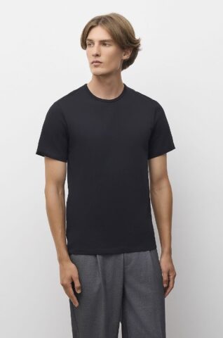 Такое изделие выполнено из плотного премиального трикотажа. В составе присутствует натуральный длинноволокнистый хлопок, который также является мягким и дышащим. Модель имеет прямой крой и округлый вырез. Футболка хорошо сочетается с любыми брюками и может использоваться в качестве самостоятельного верха или составляющей многослойного аутфита.